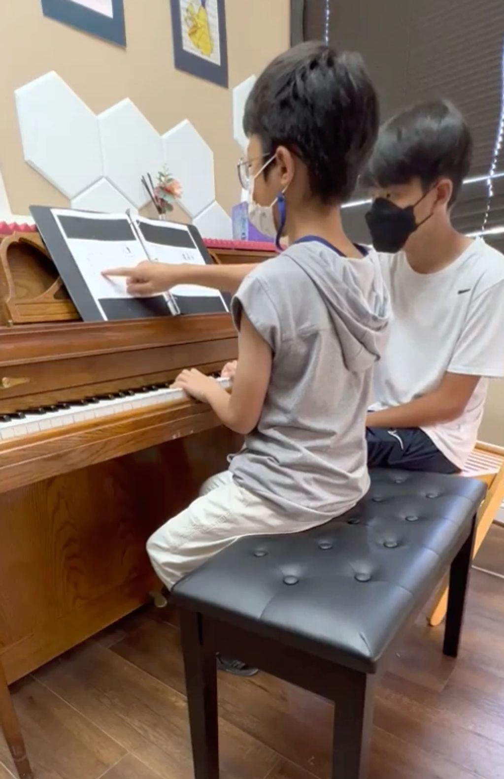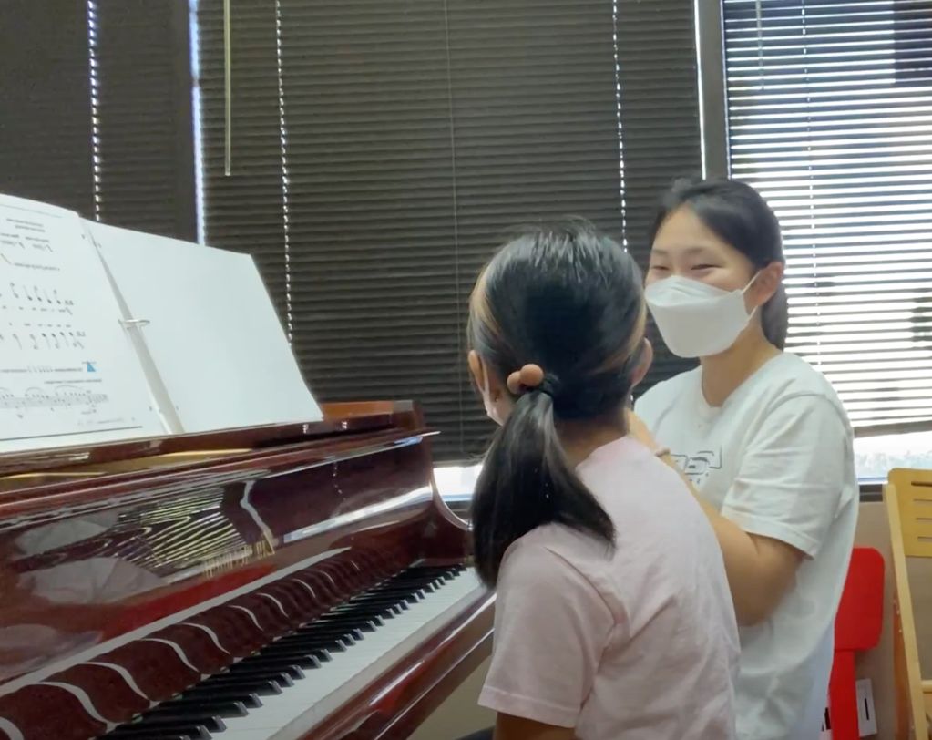 My name is Ashley Ahn, and I am one of the teachers of Music Angels Hands’ Free Teaching Program. My student is 5th grader Wesley Sa, whom I have been teaching since June 12th of last year (2022). He has been learning how to play the piano through the Piano Adventures book series, starting with Level 1A and currently learning Level 2B. He is also learning preparatory level the